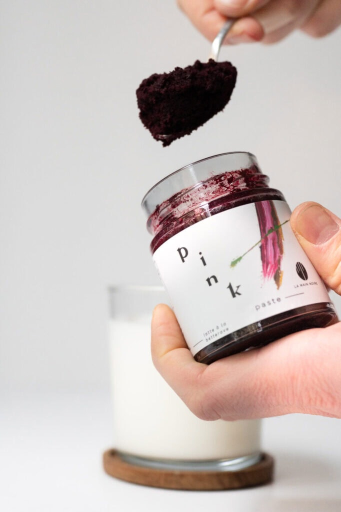 Premier mélange 100% naturel de betterave confite, cacao cru et cardamome verte, la Pink Paste transforme vos boissons et desserts en véritables œuvres gourmandes. Sa couleur rose éclatante et son mariage subtil de cacao et de betterave surprennent et ravissent à chaque dégustation.