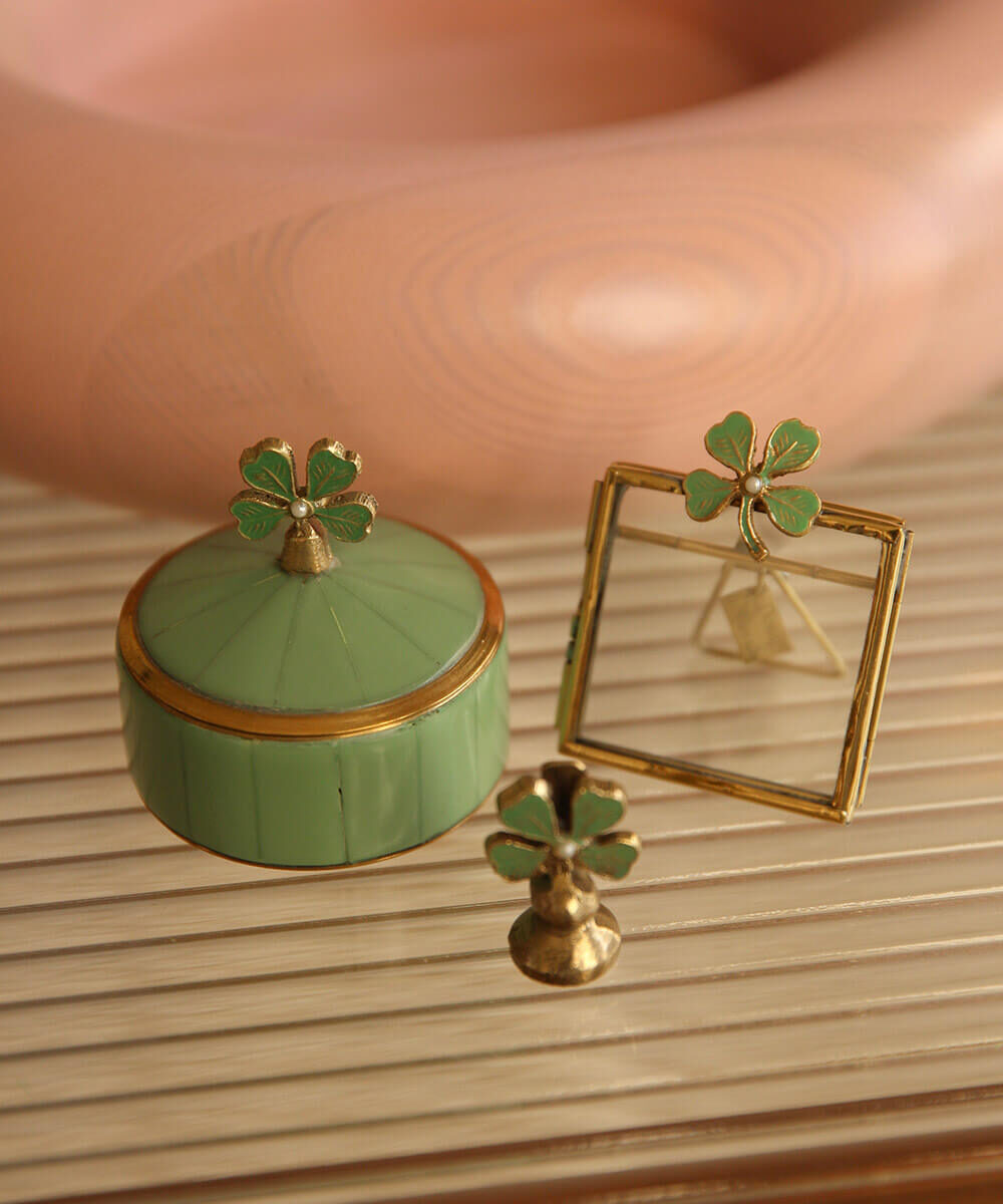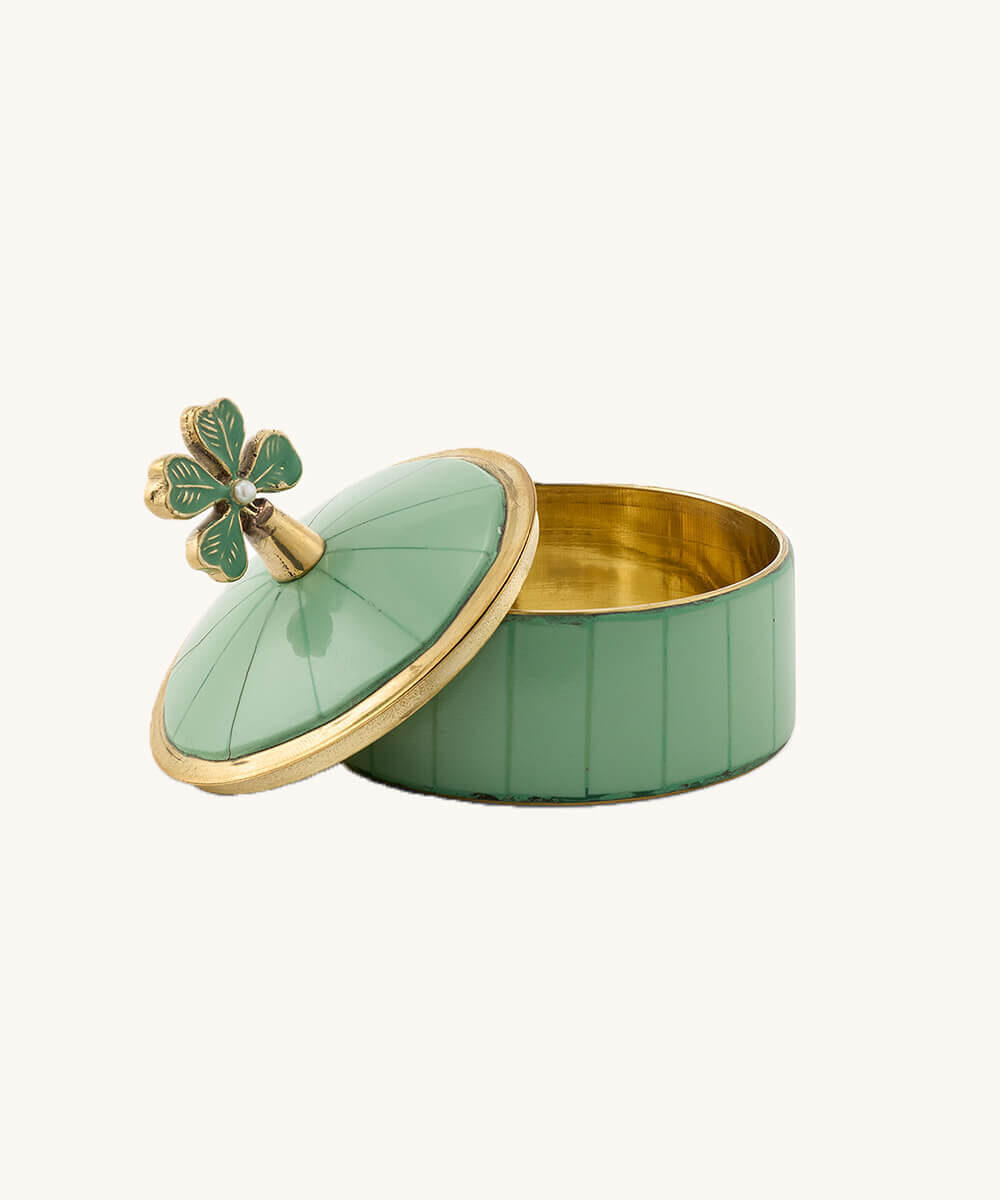 Découvrez notre Boîte Lucky Clover Circus, un véritable trésor fait main qui apportera charme et originalité à votre intérieur. Conçue avec soin par nos talentueux artisans en Inde, cette boîte ludique allie laiton et coquillages, pour un résultat à la fois décoratif et pratique.